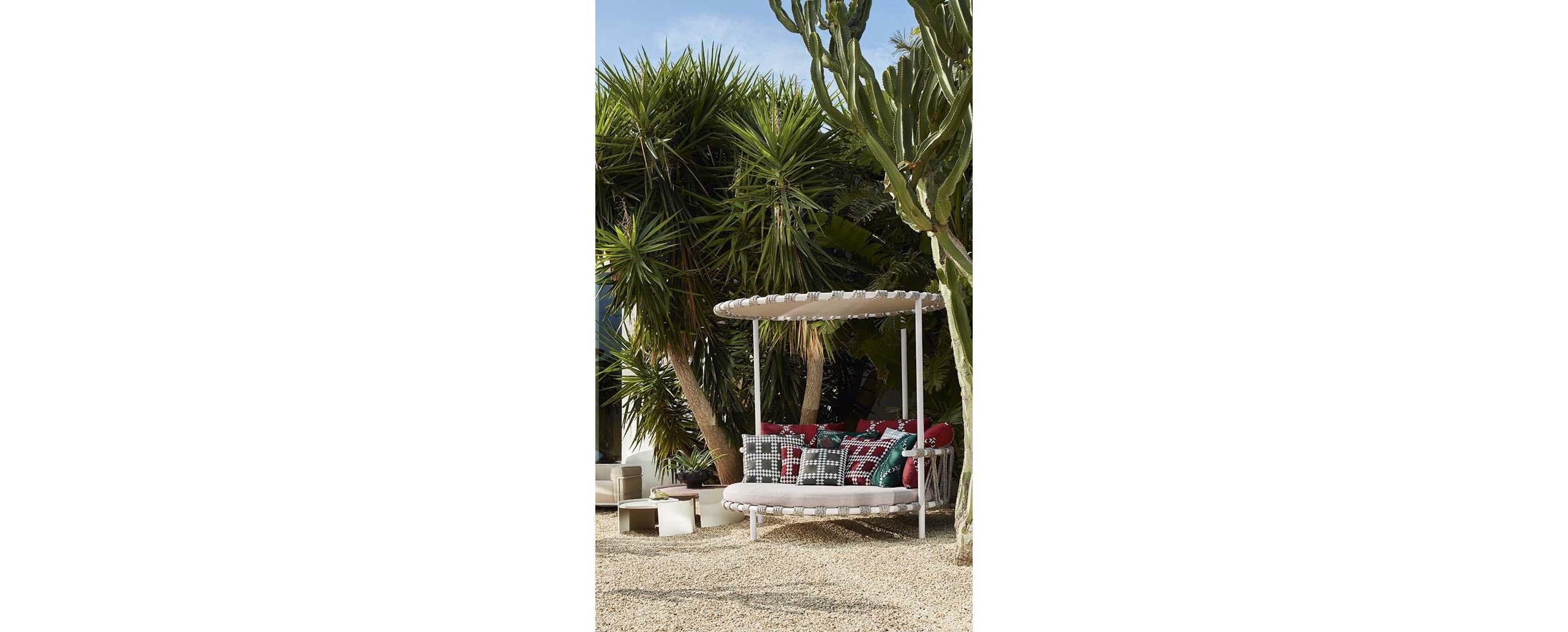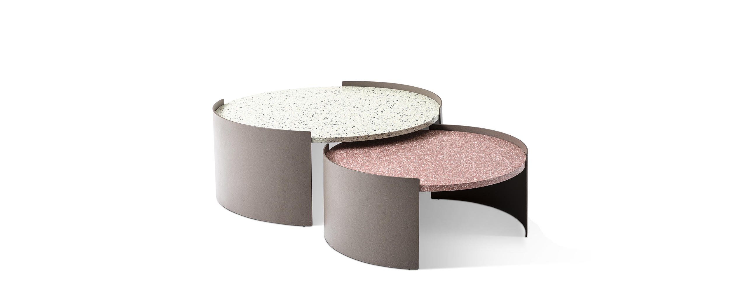 I tavolini Bowy, con forme smussate come lo stesso originale divano per interni disegnato da Patricia Urquiola nel 2018, vengono proposti anche in versione outdoor. Sovrapponibili e intersecabili, arredano l’ambiente living all'aria aperta con due diverse misure, accomunate dalla struttura in lamiera di alluminio verniciata nelle finiture goffrato fango e goffrato avorio, e dal piano in vetroresina riciclata RFM?, disponibile nei colori bianco e rosso o bianco e grigio.