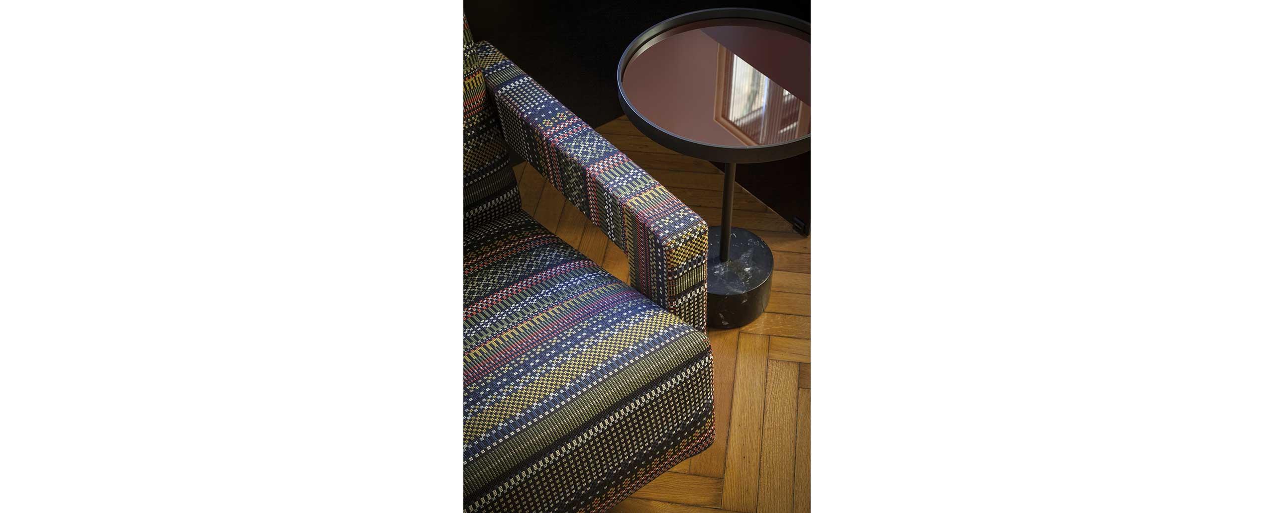 Il tessuto Point è il risultato della collaborazione tra il designer/stilista inglese Paul Smith e Maharam Design Studio.