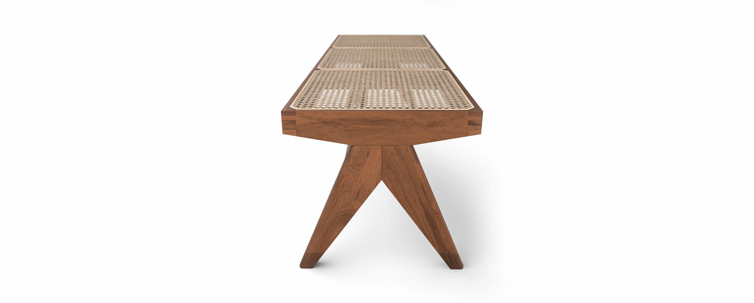 Cassina continua lo studio degli arredi della città di Chandigarh e aggiunge alla Collezione Hommage à Pierre Jeanneret la Civil Bench, che si distingue per le forme essenziali e i ma-teriali semplici in equilibrio tra gli ideali moderni europei e lo spirito tradizionale indiano. La panca, realizzata tra il 1955 e il 1956 per gli alloggi e gli appartamenti dei membri dell’Assemblea di Legislatura della città indiana, è costituita da una seduta in tre elementi affiancati, sorretta da un solo traverso frontale e da due sostegni laterali posizionati a for-ma di “V” rovesciata. Il sedile si caratterizza per la tipica impagliatura che accomuna la Col-lezione, mentre per il telaio in legno, l’edizione del Centro Ricerche e Sviluppo di Cassina propone, oltre alla storica versione in teak, due varianti in rovere naturale e rovere tinto ne-ro, eseguite nella storica falegnameria dell’azienda. Un cuscino opzionale è disponibile per assicurare una maggiore protezione e comodità.