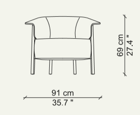 This comfortable armchair with seat in flexible polyurethane foam and upholstered in leather or fabric from the Cassina collections, this chair is elegantly finished with piping that defines and outlines the backrest of the armchair; ideal for furnishing corporate offices, lounge areas and lobbies.