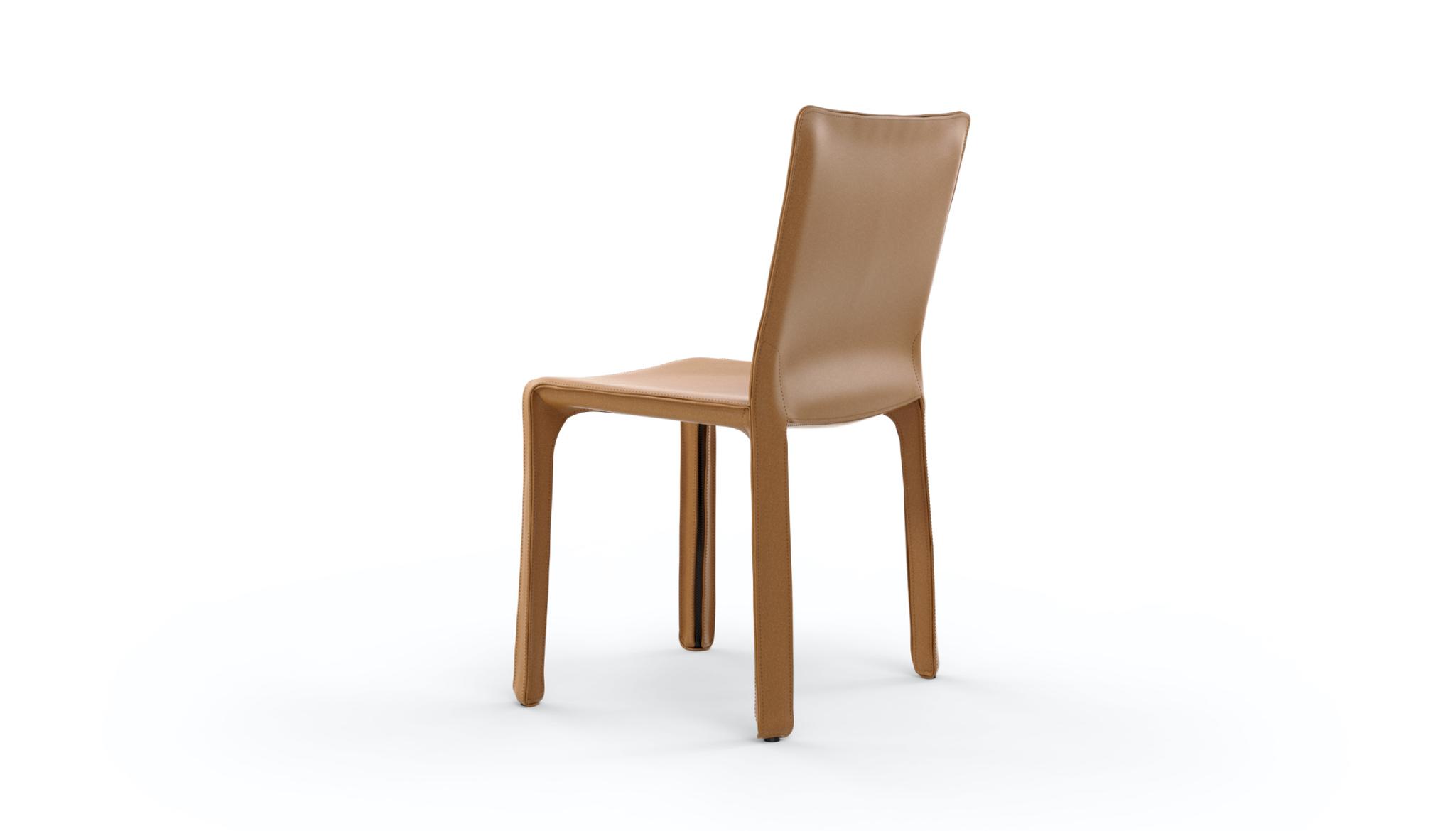 Cab is the first saddle-hide chair with a free-standing structure, inspired by the relationship between the skeleton and the skin. The individual pieces of saddle-hide are stitched together and the upholstery is then molded to a steel skeleton and closed with zippers, like a custom-tailored suit. The Cab version with armrests and stool completes the collection.
