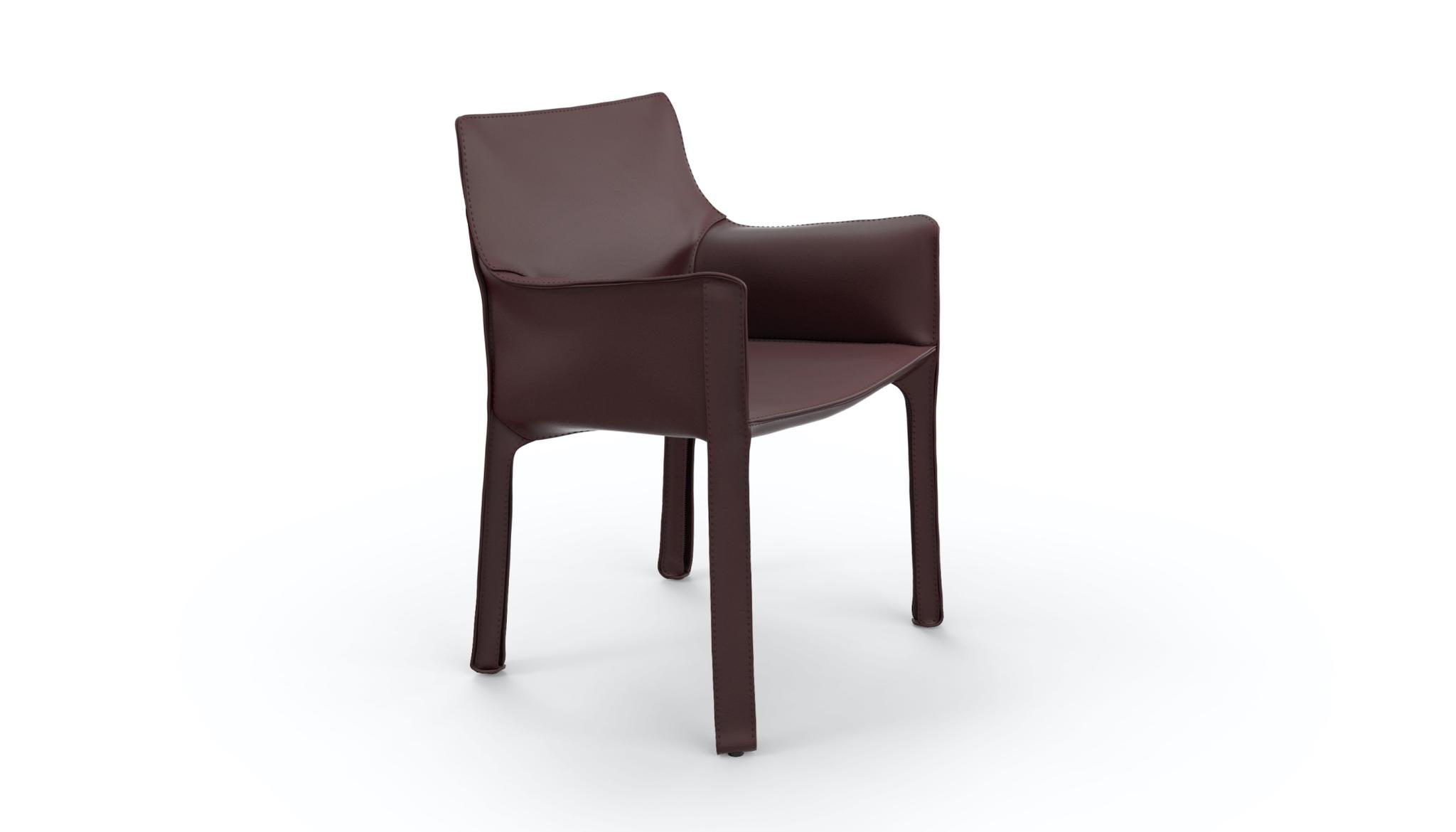 Cab is the first saddle-hide chair with a free-standing structure, inspired by the relationship between the skeleton and the skin. The individual pieces of saddle-hide are stitched together and the upholstery is then molded to a steel skeleton and closed with zippers, like a custom-tailored suit. The Cab version with armrests and stool completes the collection.