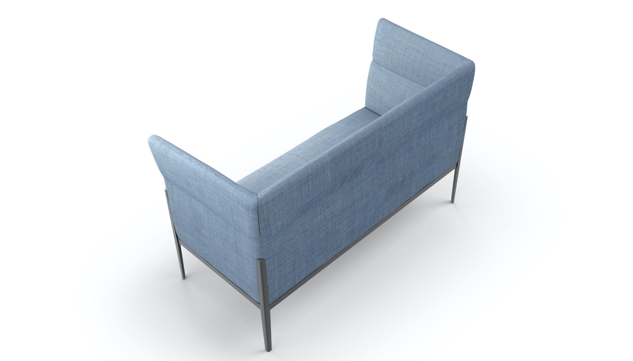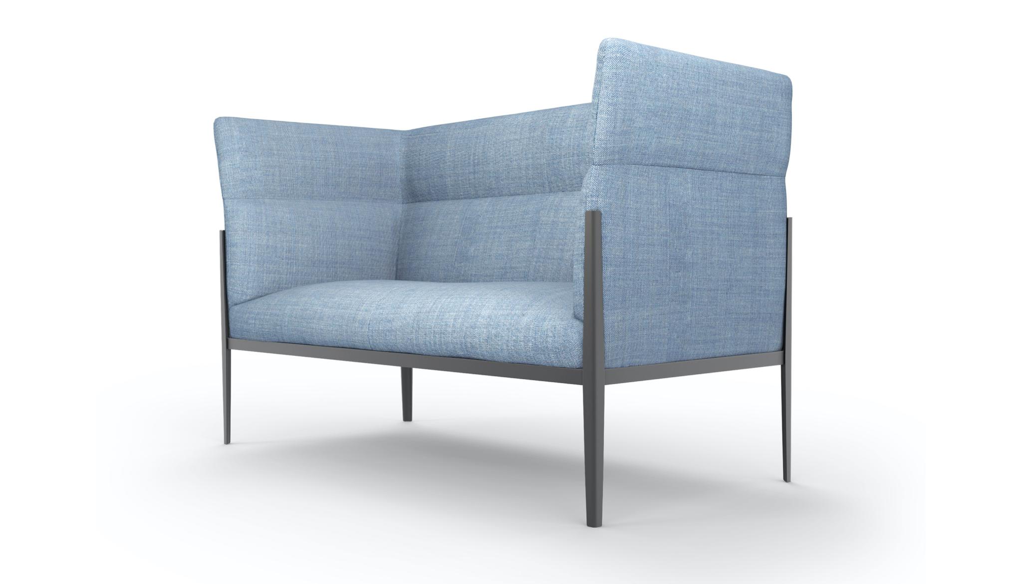 This comfortable design sofa, part of the Cotone family, features a distinctive structure in red, grey-blue or matte champagne anodized aluminum. Seemingly simple, thanks to its minimalist look, it hides some industrially sophisticated internal workings.