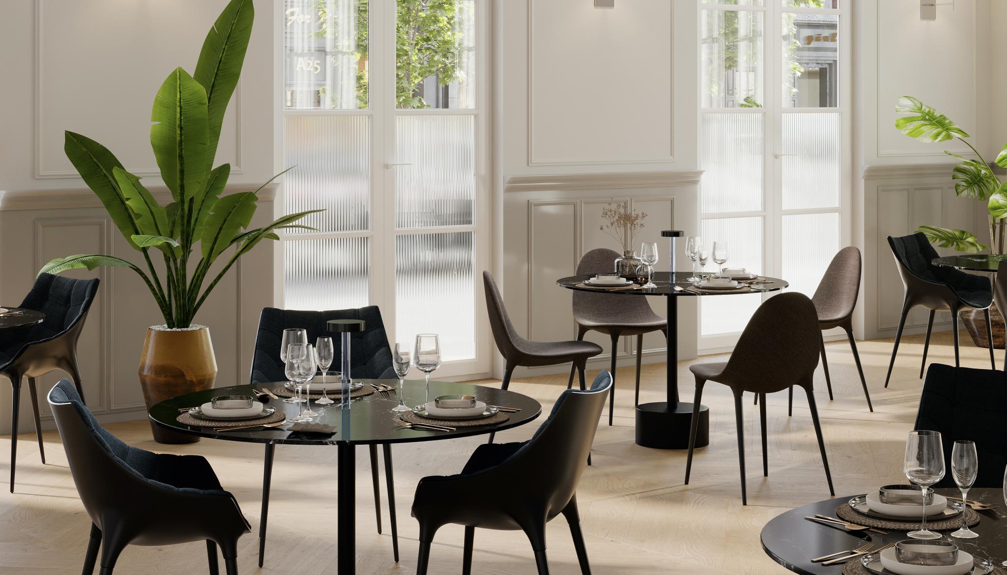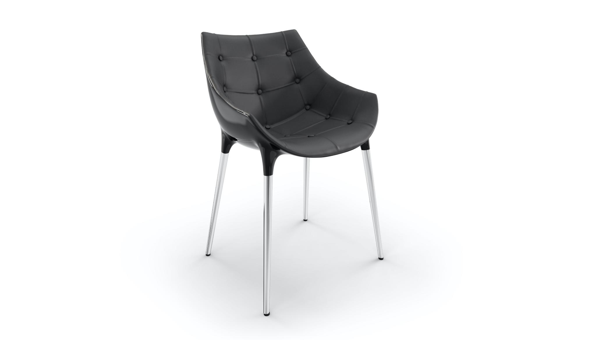 Passion is known for its iconic comfortable design, with a 4-leg frame in painted or chrome-plated steel. The Caprice chair, also by Philippe Starck, rounds out the collection.