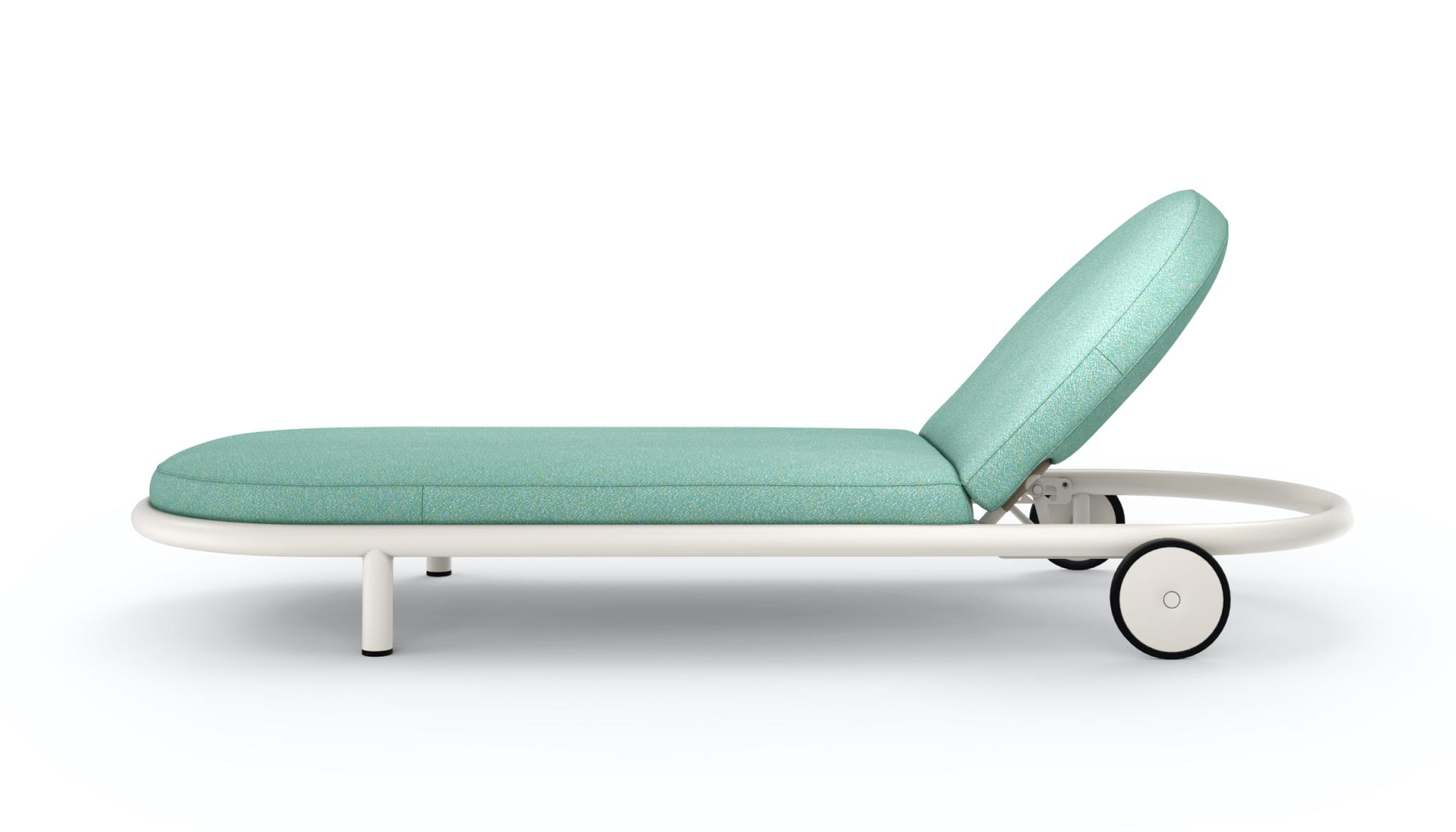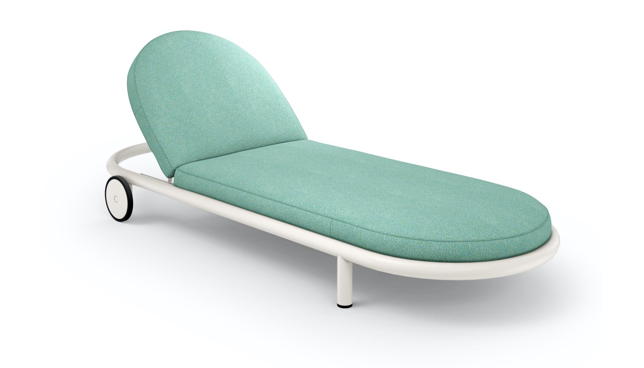 Patricia Urquiola designs a new sunbed that completes the Trampoline family of outdoor furnishings, a sophisticated, versatile product and an open invitation to comfort and wellbeing outdoors.