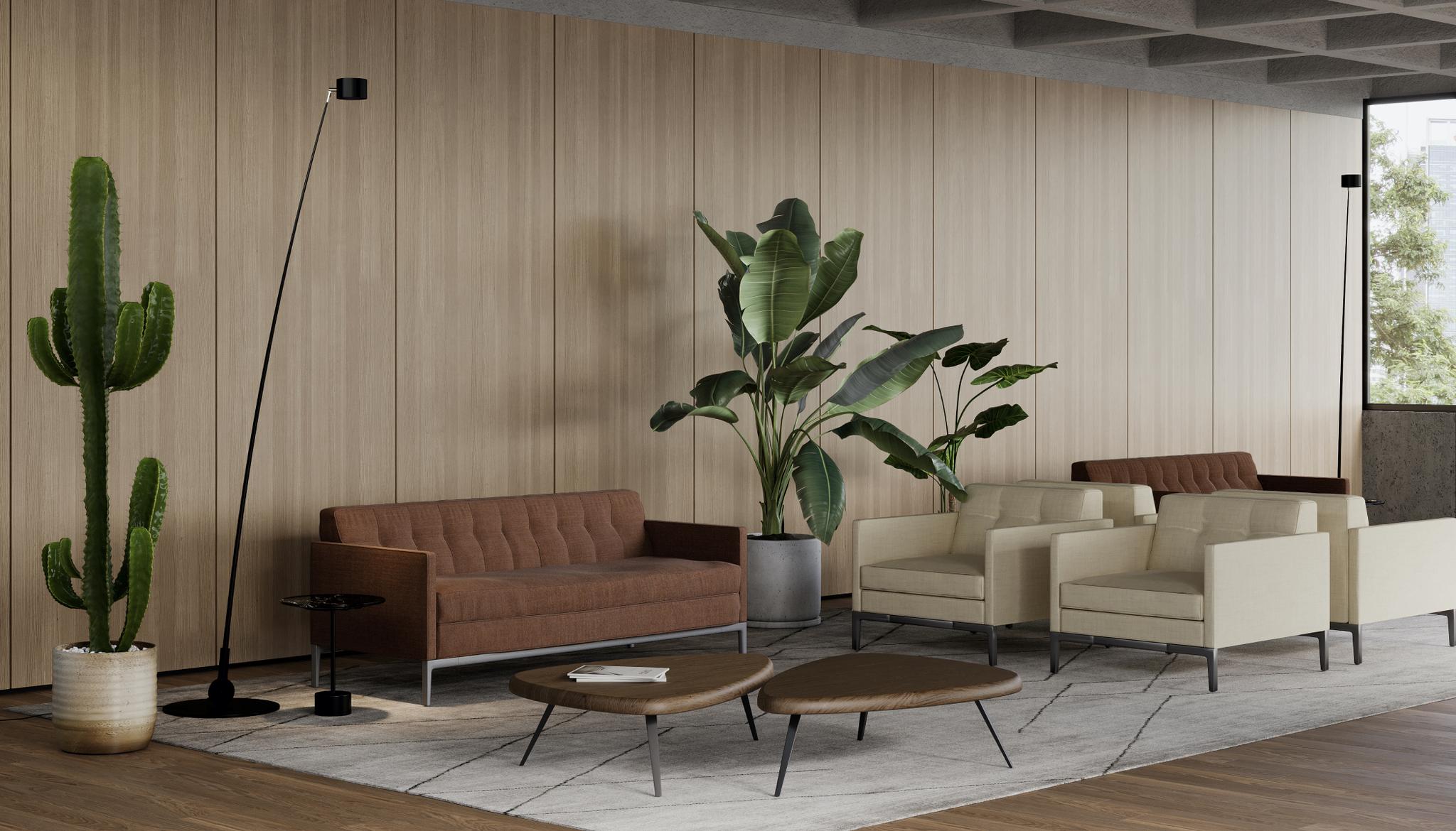 This contemporary sofa with an aesthetic of timeless elegance is an ideal fit in any type of project ? lounge areas, lobbies and luxurious executive offices. It comes with a new 75cm depth. The collection is completed by a large two-seater sofa and an armchair.