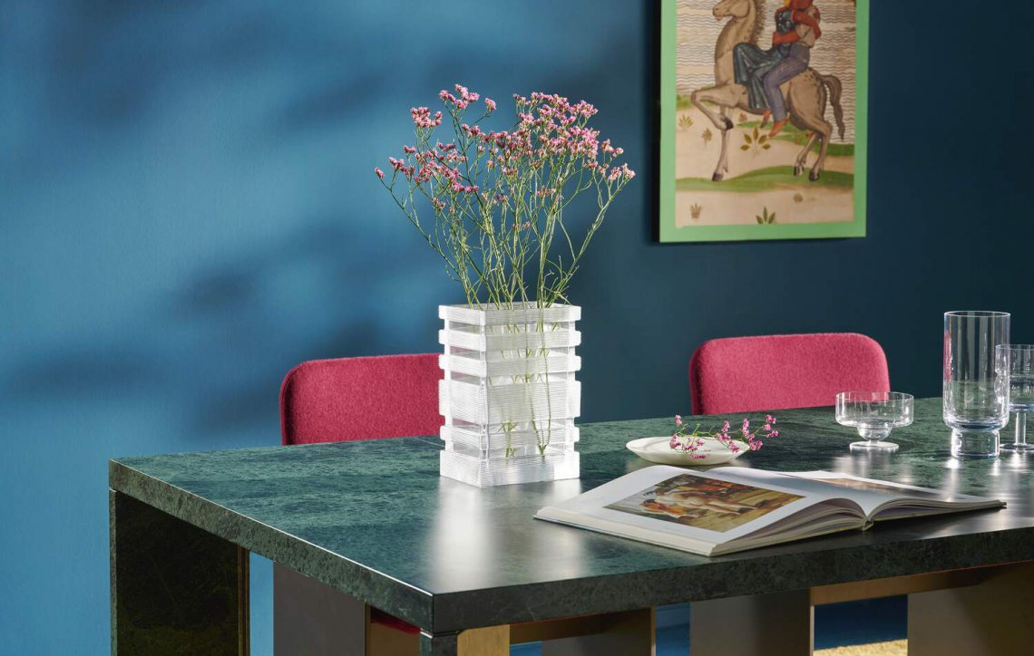 在這個(gè)由Bodil Kj?r在六十年代初設(shè)計(jì)的Skyscraper新版本中,建筑仍然是主角。從其名稱“Skyscraper(摩天大樓)”就可以看出,這個(gè)花瓶的輪廓讓人們想起了摩天大樓。它雕塑般的外形是通過(guò)復(fù)雜的工藝而實(shí)現(xiàn)的,而玻璃的精致則突出了其強(qiáng)烈的美學(xué)效果。