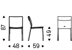 Chair with or without arms with steel frame completely covered in fabric, synthetic nubuck, micro nubuck, synthetic leather or soft leather as per sample card. The cover is not removable.