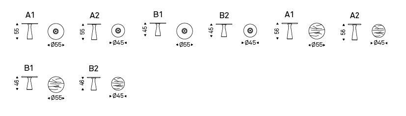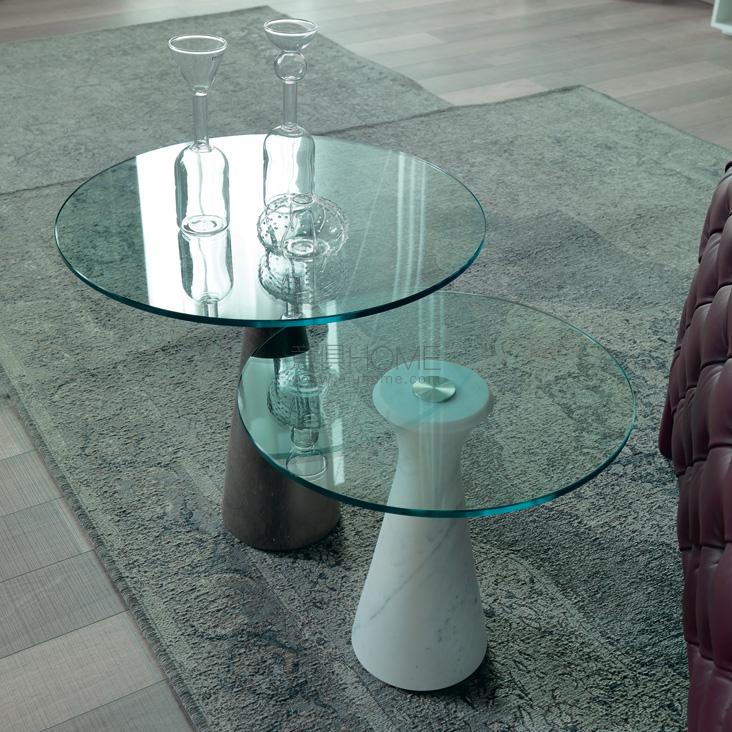 Coffee table with feet in matt Ebano (EBO) or matt white Carrara (BCO) marble. Top in matt Ebano (EBO), matt white Carrara (BCO) marble or tempered 10 mm clear glass. Ballast optional.
