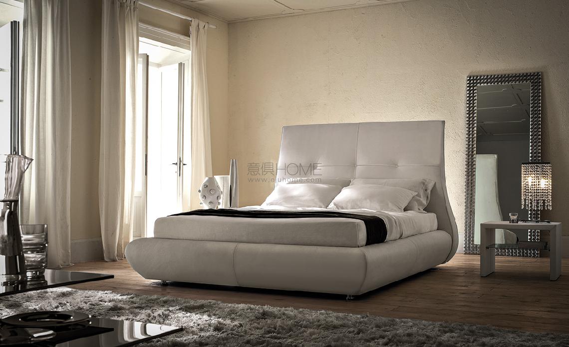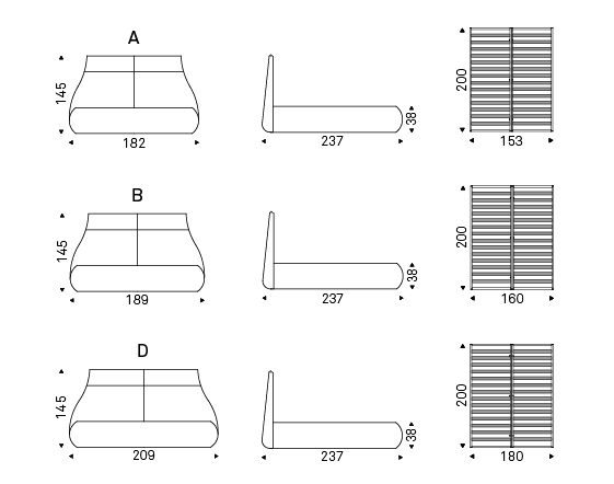 Bed with upholstered headboard and frame covered in fabric, synthetic nubuck, micro nubuck, synthetic leather or soft leather as per sample card. Slats included. Optional: pull-up slats with container.