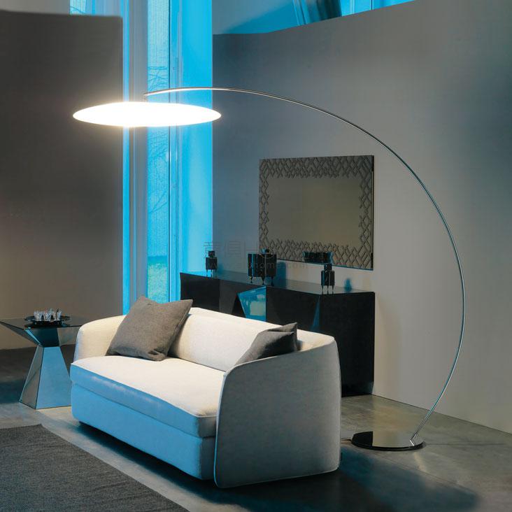 Floor lamp with white polyethylene lampshade. Base and steam in chromed (08) steel. Bulb not included.