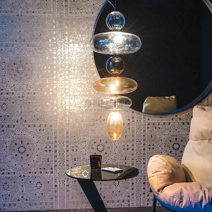 Ceiling lamp with black chrome steel frame (06). Lampshade in transparent, smoked and orange borosilicate glass. Bulb included.