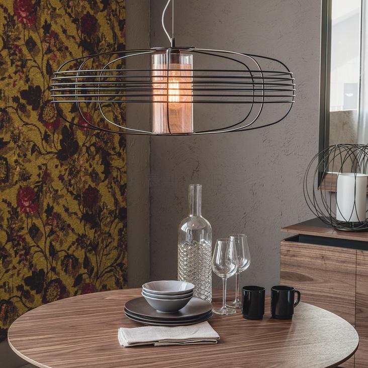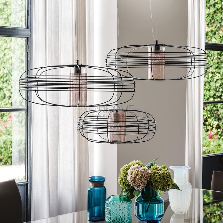 Ceiling lamp with matt black (OP17) painted steel or Nickel frame. Lampshade in borosilicate glass and copper net. Bulb not included.