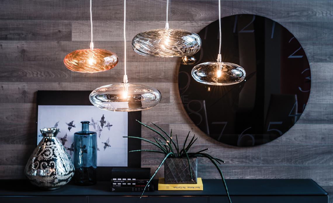 Ceiling lamp with borosilicate transparent glass lampshade. Bulb included.