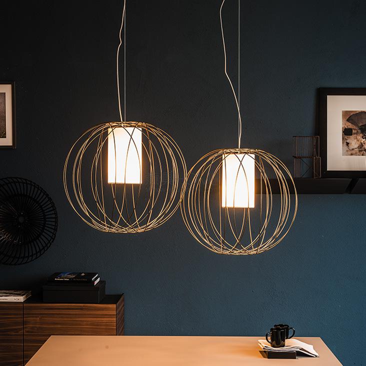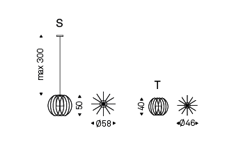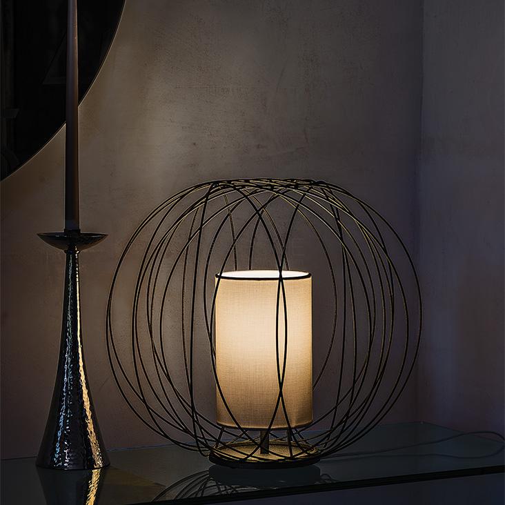 Ceiling or floor lamp with steel frame in painted matt black (OP17) or Nickel. Lampshade in ivory fabric. Bulb not included.