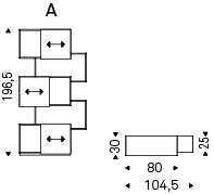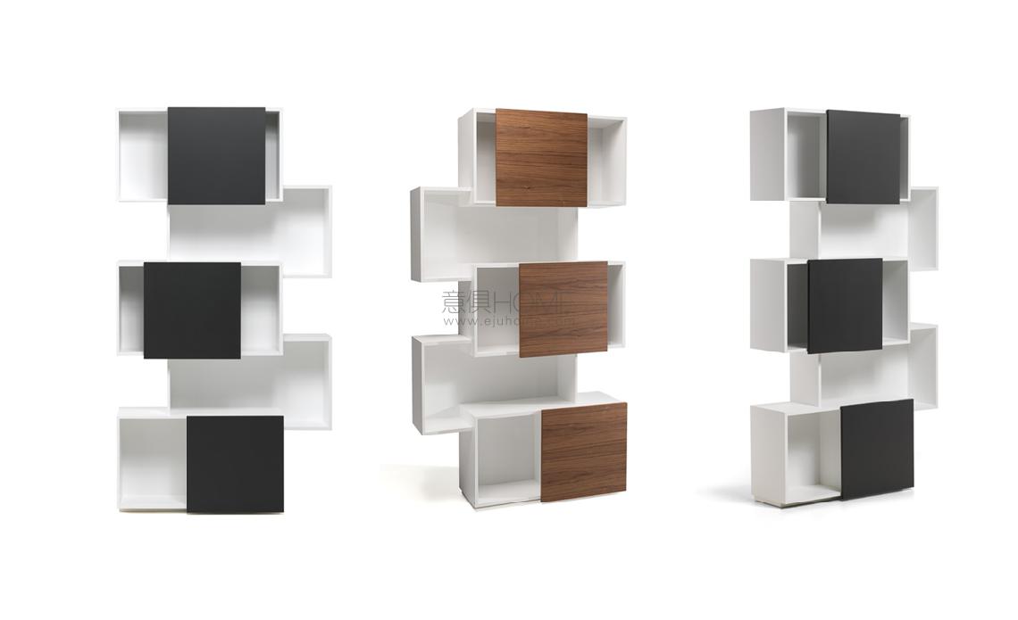 Bookshelves container with embossed graphite (GF69) or white (GF71) MDF frame, sliding doors in embossed white (GF71), graphite (GF69), grey (GF30), Canaletto walnut (NC), natural oak (RN) or Brushed Bronze MDF. Max capacity: 60 kg spread load.