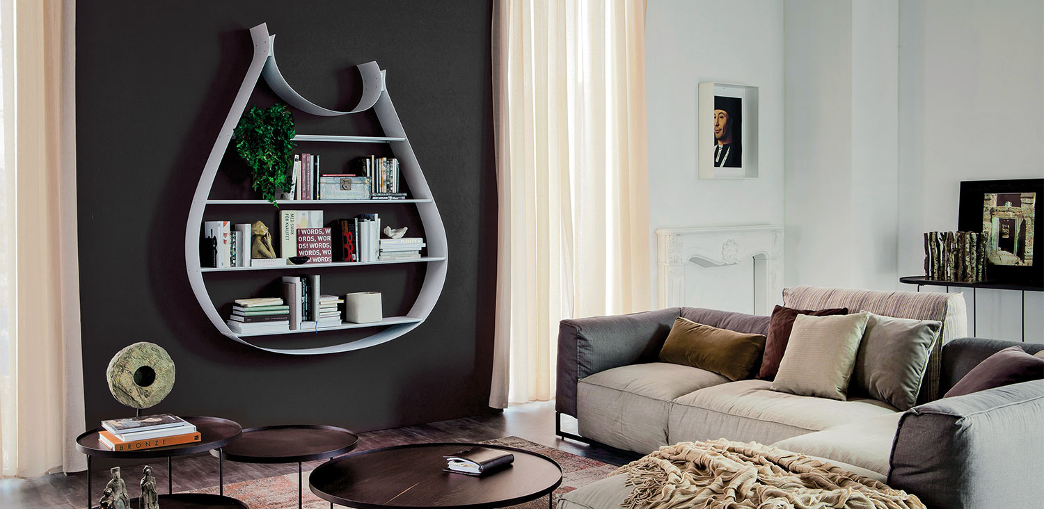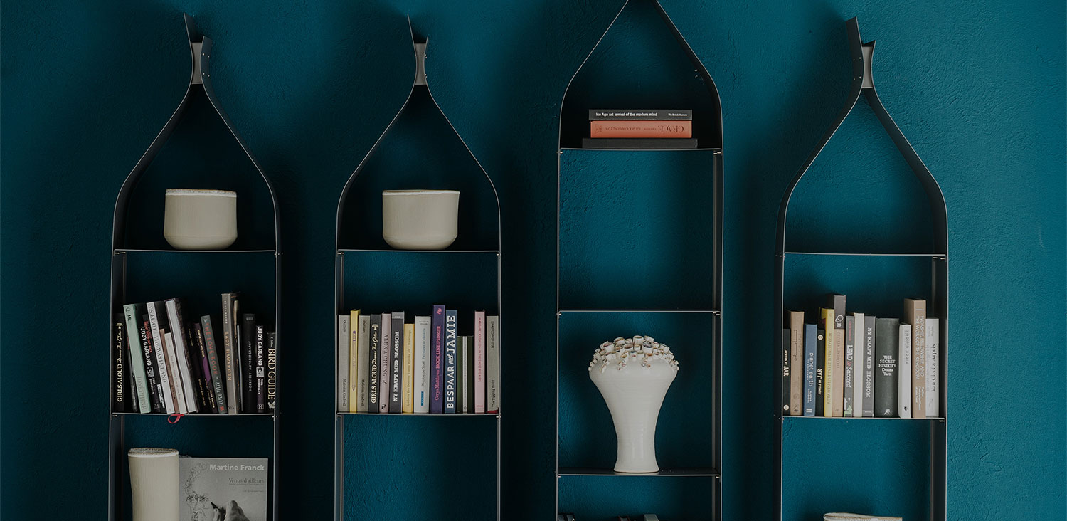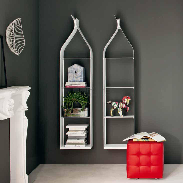 Bookcase in graphite (GFM69) or white (GFM71) embossed lacquered steel.