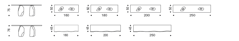 Console with legs in white or grey colored cement. Top in solid Canaletto walnut (NC), burned oak (RB) or natural oak (RN) with irregular edges.