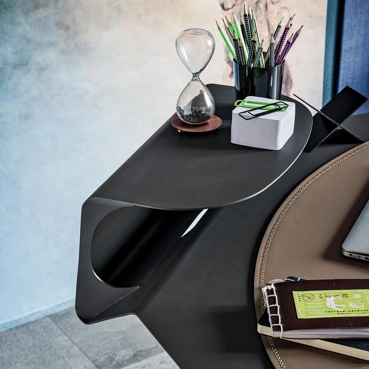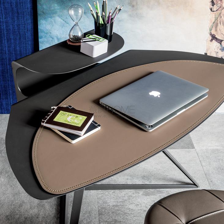 Desk with frame and top in titanium (GFM11), bronze (GFM18), graphite (GFM69) or white (GFM71) embossed lacquered steel. Leather pad as per sample card.