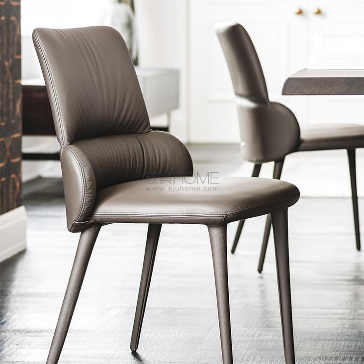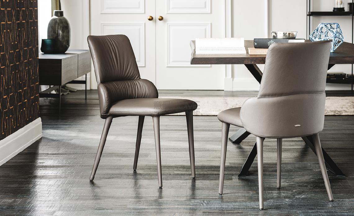 Chair with steel frame upholstered in fabric, synthetic nubuck, micro nubuck, synthetic leather or soft leather as per sample card. The cover is not removable.