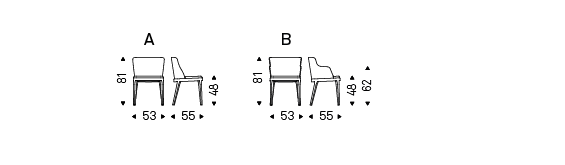 Chair with or without arms with frame in natural ashwood (frN), Canaletto walnut stained ashwood (frNC), burned oak stained ashwood (frRB), open pore matt white (fr71) or black (fr73) painted ashwood. Seat and back upholstered in fabric, synthetic nubuck, micro nubuck, synthetic leather or soft leather as per sample card. The cover is not removable.
