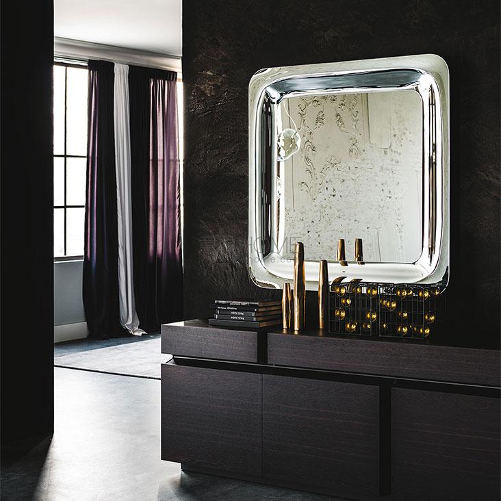 Wall or floor mirror with the whole frame in mirrored, smoked grey or bronze mirrored glass. Mirror is equipped with plates for both horizontal and vertical installation.