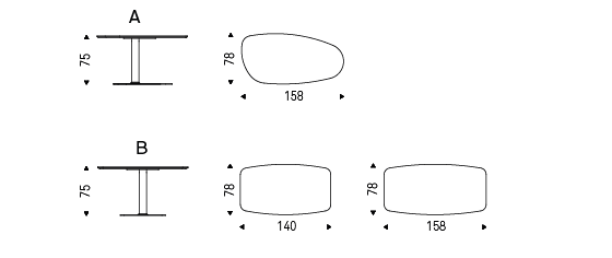 Table with titanium (GFM11), graphite (GFM69) or black (GFM73) embossed steel base. Marmi ceramic Calacatta (KM01), Ardesia (KM04), matt Golden Calacatta (KM05), glossy Golden Calacatta (KM06), matt Portoro (KM07), glossy Portoro (KM08), glossy Sahara Noir (KM09), Emperador (KM10), Makalu (KM11), Breccia (KM12) or Arenal (KM13).