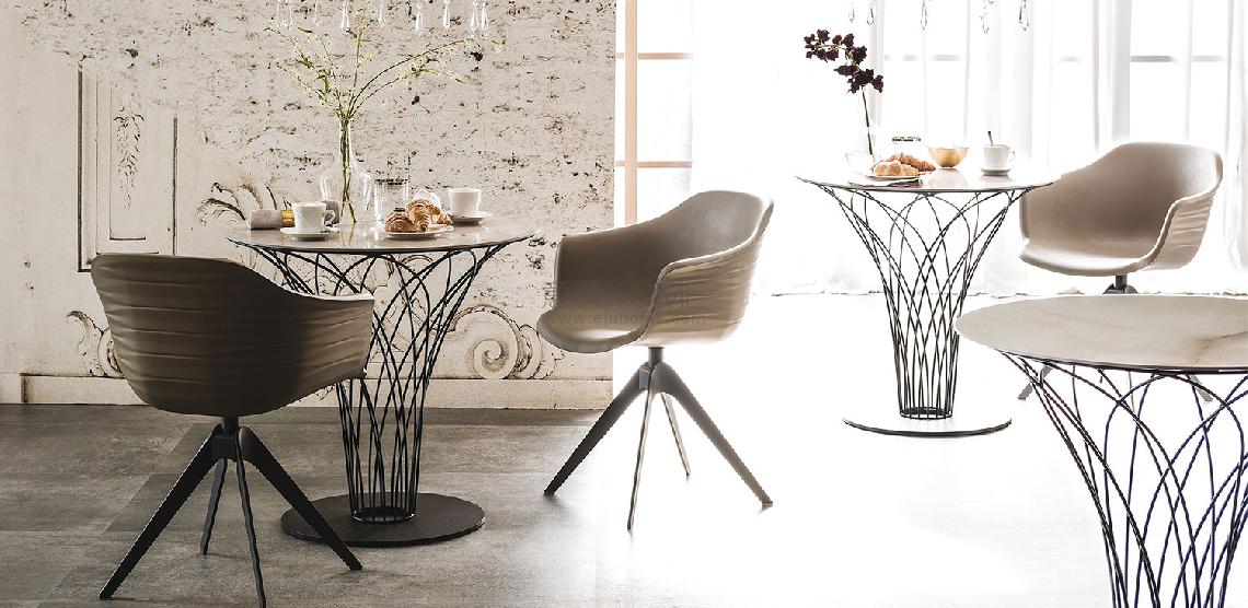 Table with graphite (GFM69), white (GFM71) or black (GFM73) embossed steel base. Marmi Calacatta (KM01), Alabastro (KM02), Ardesia (KM04), matt Golden Calacatta (KM05), glossy Golden Calacatta (KM06), Emperador (KM10), Makalu (KM11), Breccia (KM12) or Arenal (KM13) ceramic top.