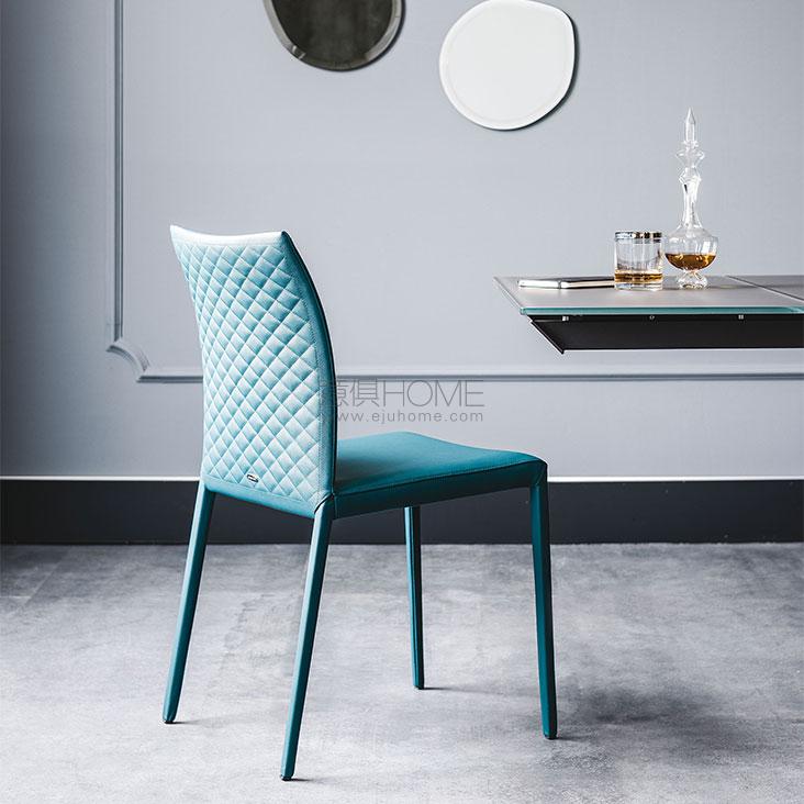 Upholstered chair with steel frame and covered in synthetic leather, synthetic nubuck or soft leather as per sample card. Quilted seatback cover. The cover is not removable.