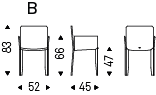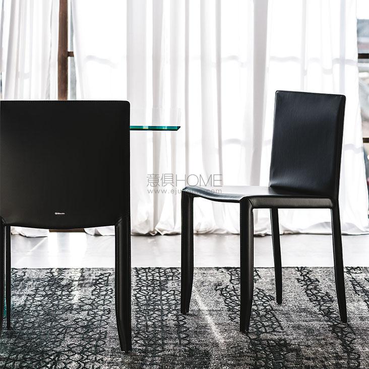 Ultralight chair with or without arms and steel frame covered in leather as per sample card. Standard stitchings.
