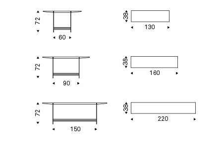 Console with base in titanium (GFM11) or black (GFM73) embossed lacquered steel. Top in Canaletto walnut (NC) or burned oak (RB).