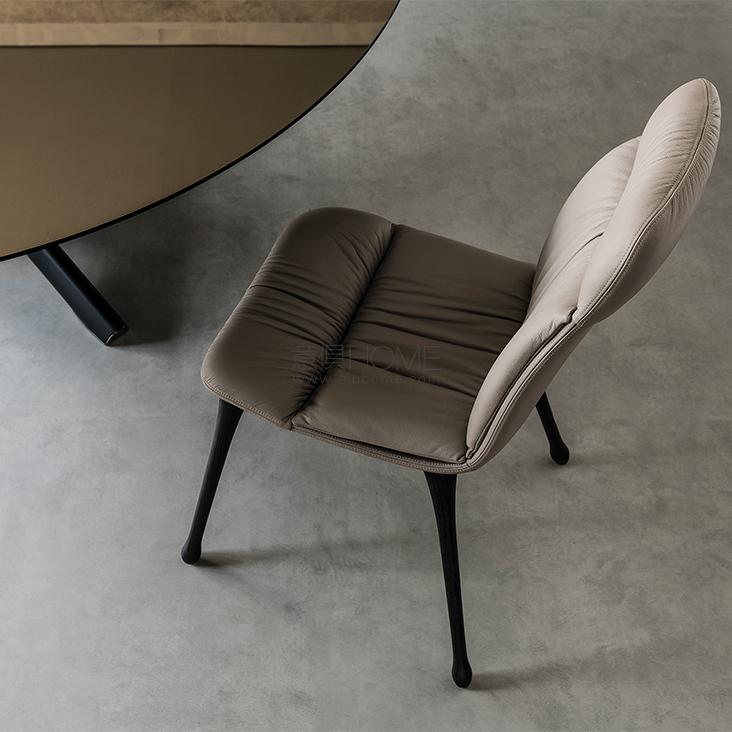 Chair with frame in natural ashwood (frN), Canaletto walnut stained ashwood (frNC), burned oak stained ashwood (frRB) or open pore matt white (fr71) or black (fr73) ashwood. Seat and back upholstered in fabric, synthetic nubuck, synthetic leather or soft leather as per sample card. The cover is not removable.