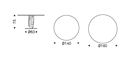Table with base in titanium (GFM11), bronze (GFM18), graphite (GFM69) or black (GFM73) embossed lacquered steel. Top in ceramic Marmi Calacatta (KM01), Alabastro (KM02), Ardesia (KM04), matt Golden Calacatta (KM05), glossy Golden Calacatta (KM06), matt Portoro (KM07), glossy Portoro (KM08), glossy Sahara Noir (KM09), Emperador (KM10), Makalu (KM11), Breccia (KM12) or Arenal (KM13).