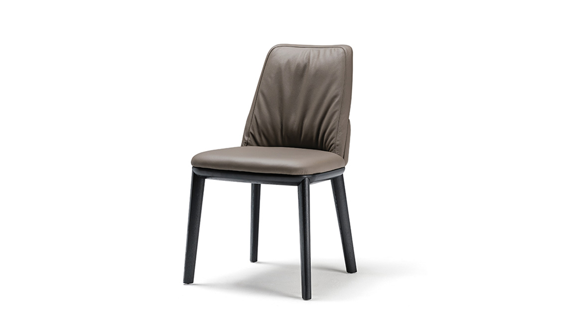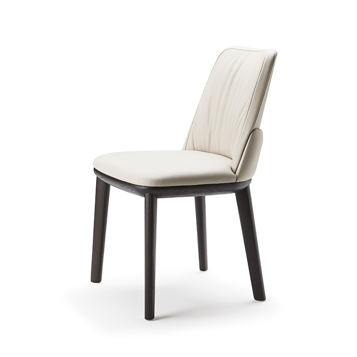 Chair with or without arms with frame in natural ashwood (frN), Canaletto walnut stained ashwood (frNC), burned oak stained ashwood (frRB) or open pore matt white (fr71) or black (fr73) ashwood. Seat and back upholstered in fabric, synthetic nubuck, micro nubuck, synthetic leather or soft leather as per sample card. The cover is not removable.