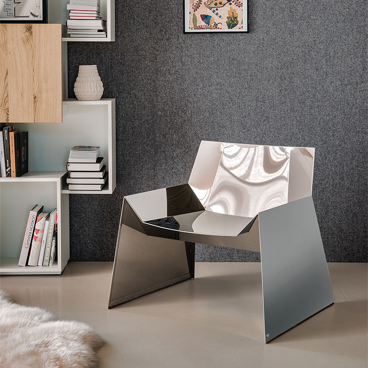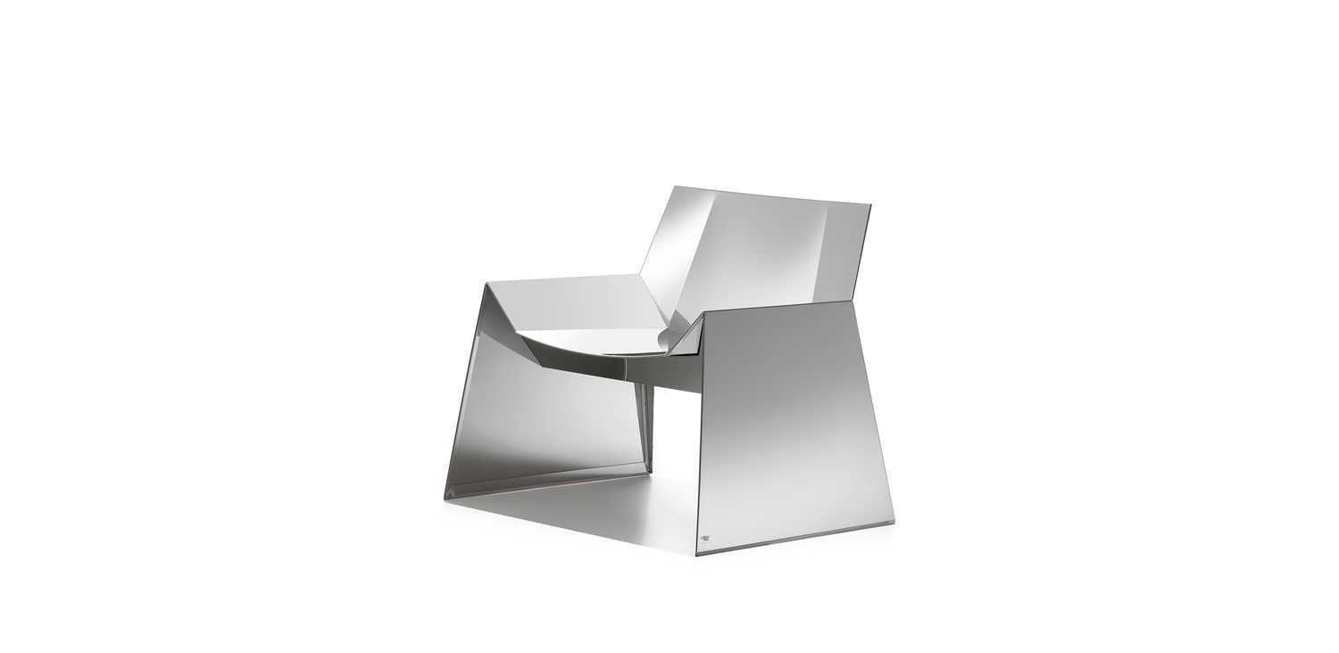 Polished stainless steel armchair.