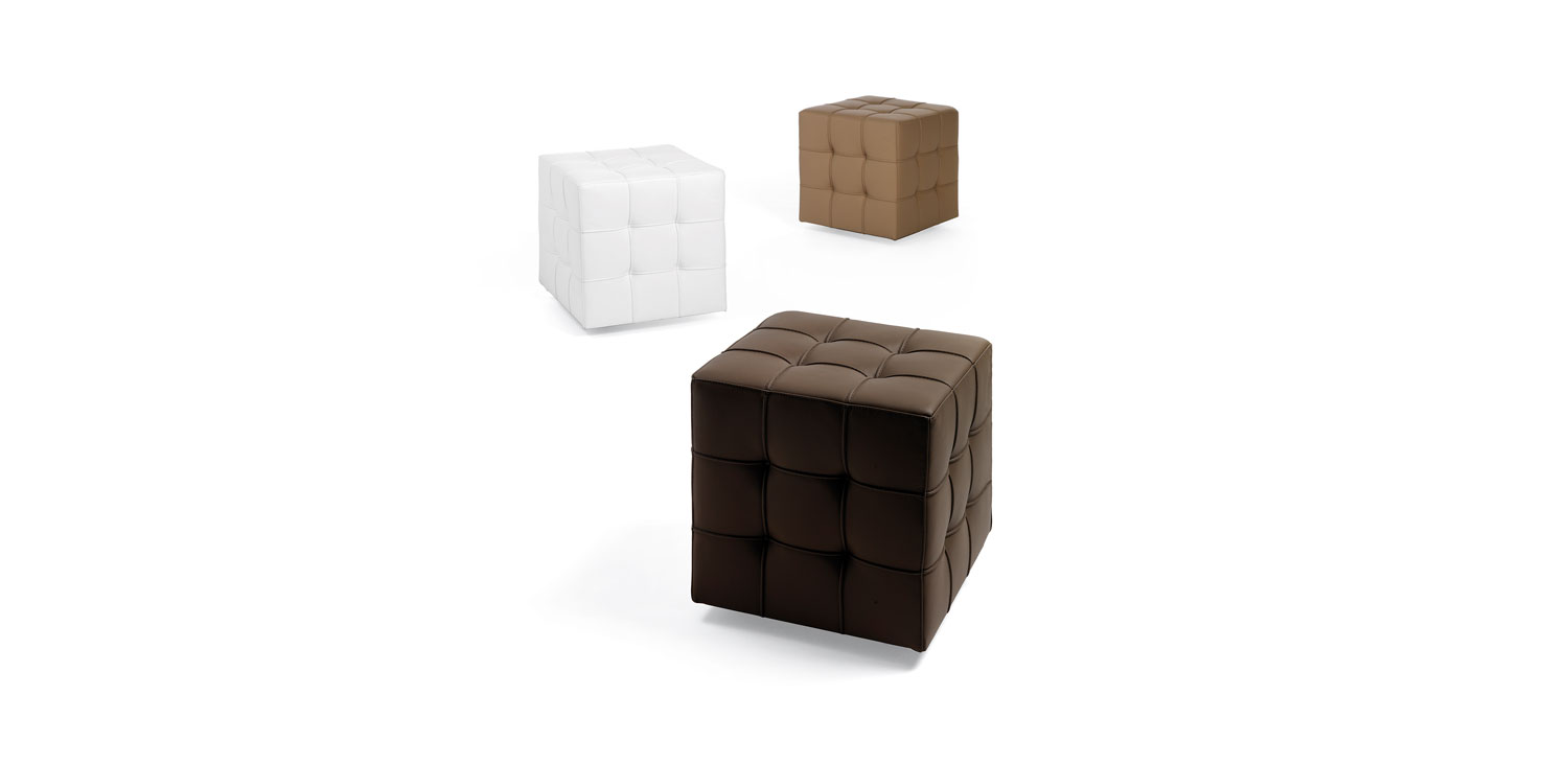 Pouf on wheels covered capitoné in synthetic nubuck, synthetic leather or soft leather as per sample card.