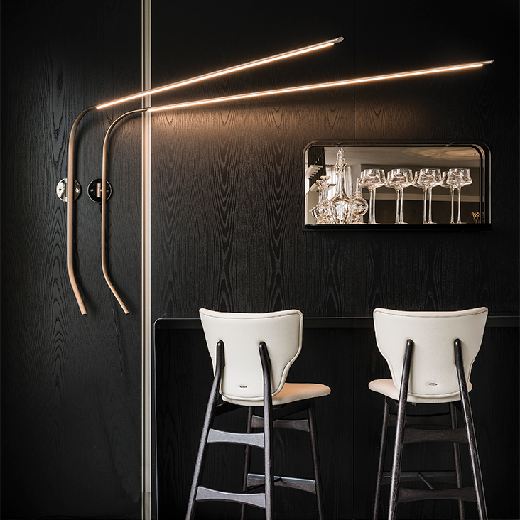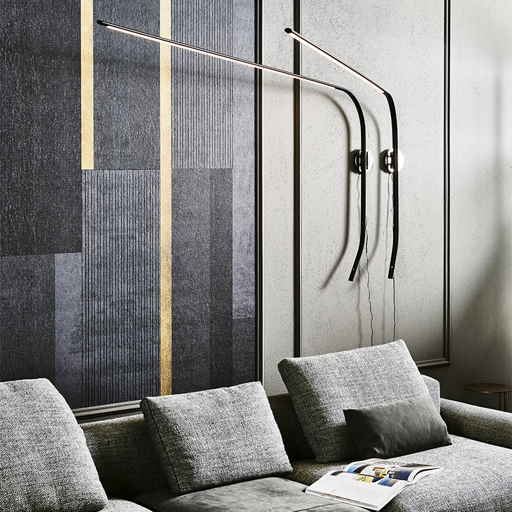 Adjustable wall lamp in titanium (GFM11), graphite (GFM69), white (GFM71) or black (GFM73) embossed lacquered steel frame. Led lights.