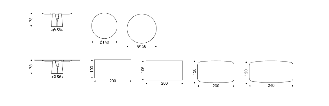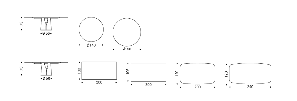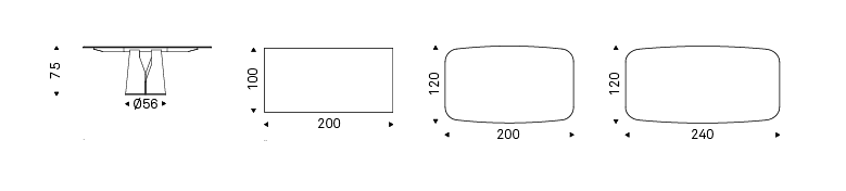 Table with base in titanium (GFM11), bronze (GFM18), graphite (GFM69), white (GFM71) or black (GFM73) embossed lacquered steel. Top 12mm thick in extra clear bevelled glass with artistic decorative printing in two different colours (CY01, CY02).