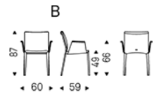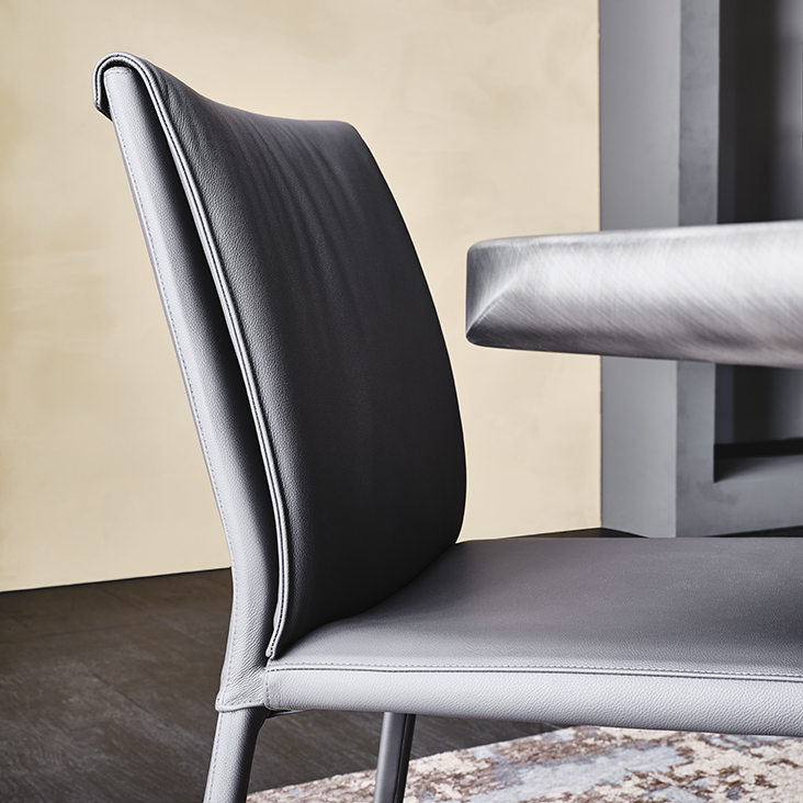 Chair with or without arms with steel frame completely covered in fabric, synthetic nubuck, micro nubuck, synthetic leather or soft leather as per sample card. The cover is not removable.