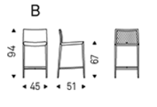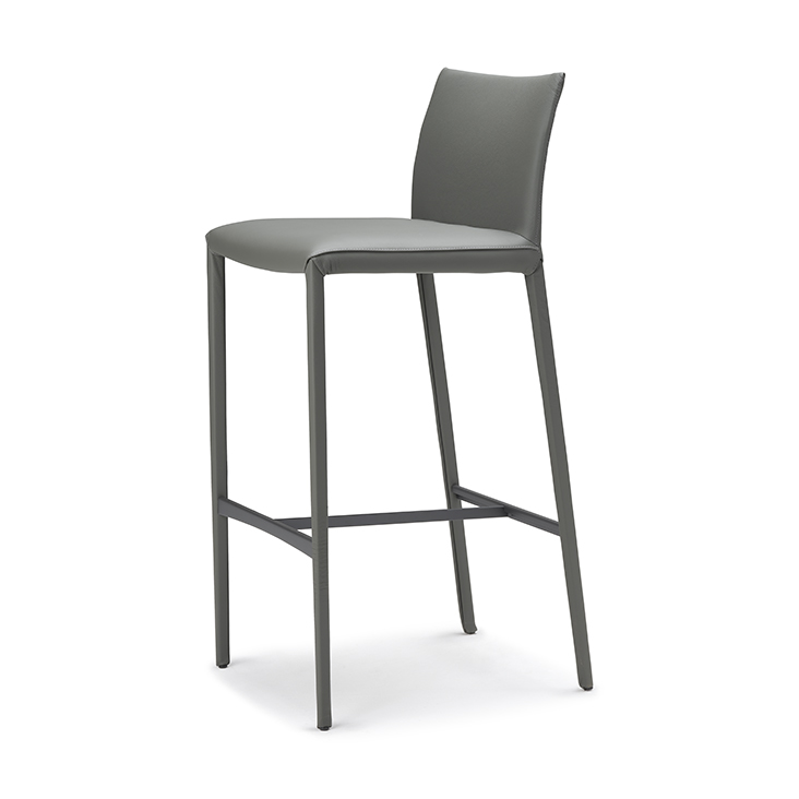 Stool with steel frame covered in synthetic leather, synthetic nubuck, micro nubuck or soft leather as per sample card. Quilted seatback cover. The cover is not removable.