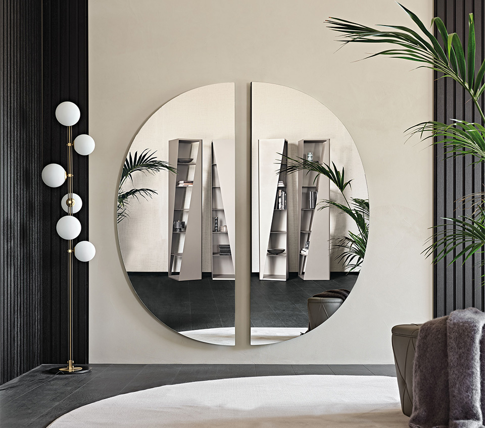The Day modern mirror is a geometry, a primordial idea, even before being an item of furnishing. This design mirror conceived by Studio Kronos is a perfect semicircle that furnishes with minimalism and rigour. At the same time, the wide mirrored curve expresses delicacy and elegance, without imposing itself on the environment, but merely expanding it and enhancing the surrounding furnishings.