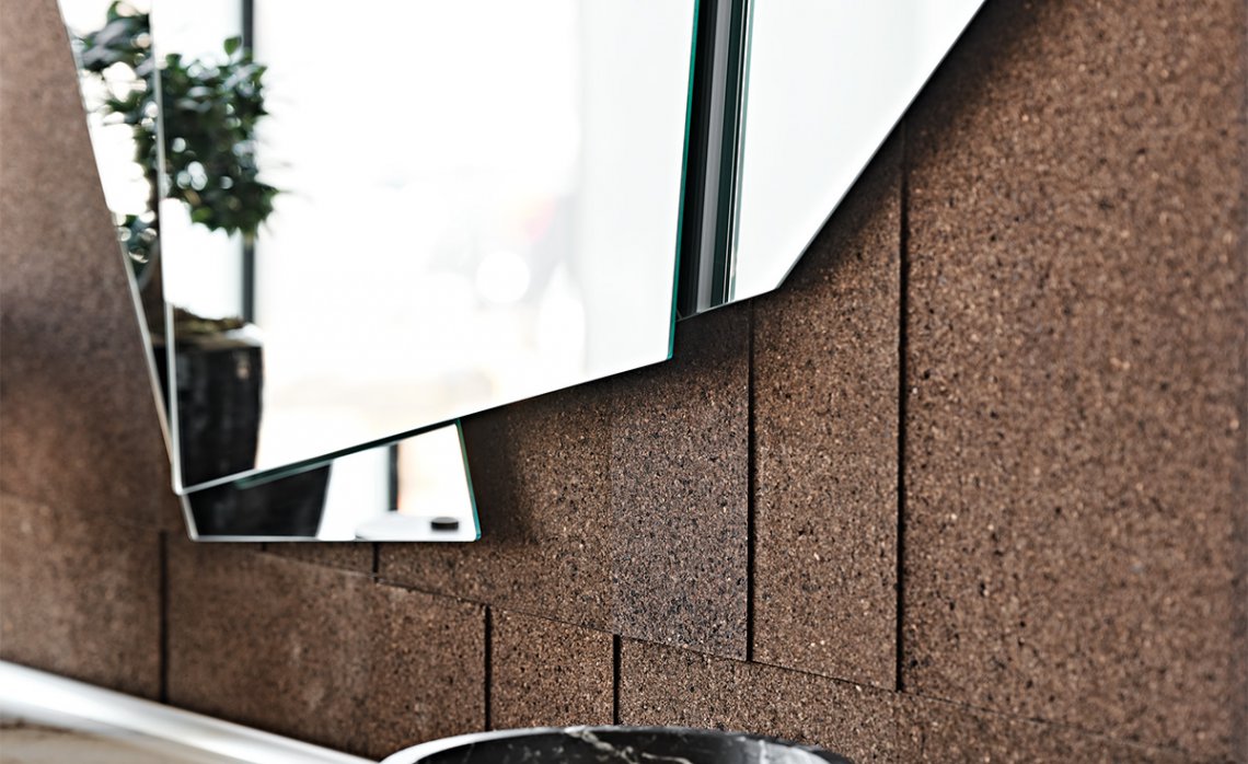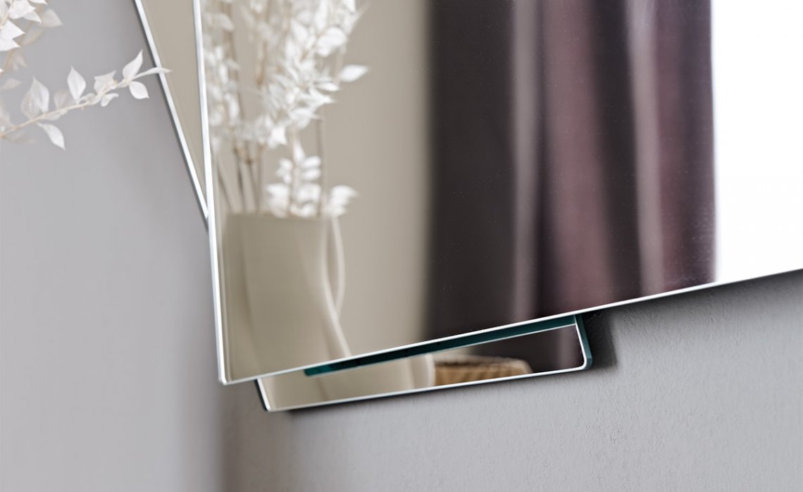 It is a mirror on three levels, with a vertical shape that can therefore comfortably reflect the human figure. The model is angular with a punchy aesthetic and seems to hold together three large fragments of a previously intact mirror. When equipped with LED light, facing the wall as a light frame, its decorative function increases further.