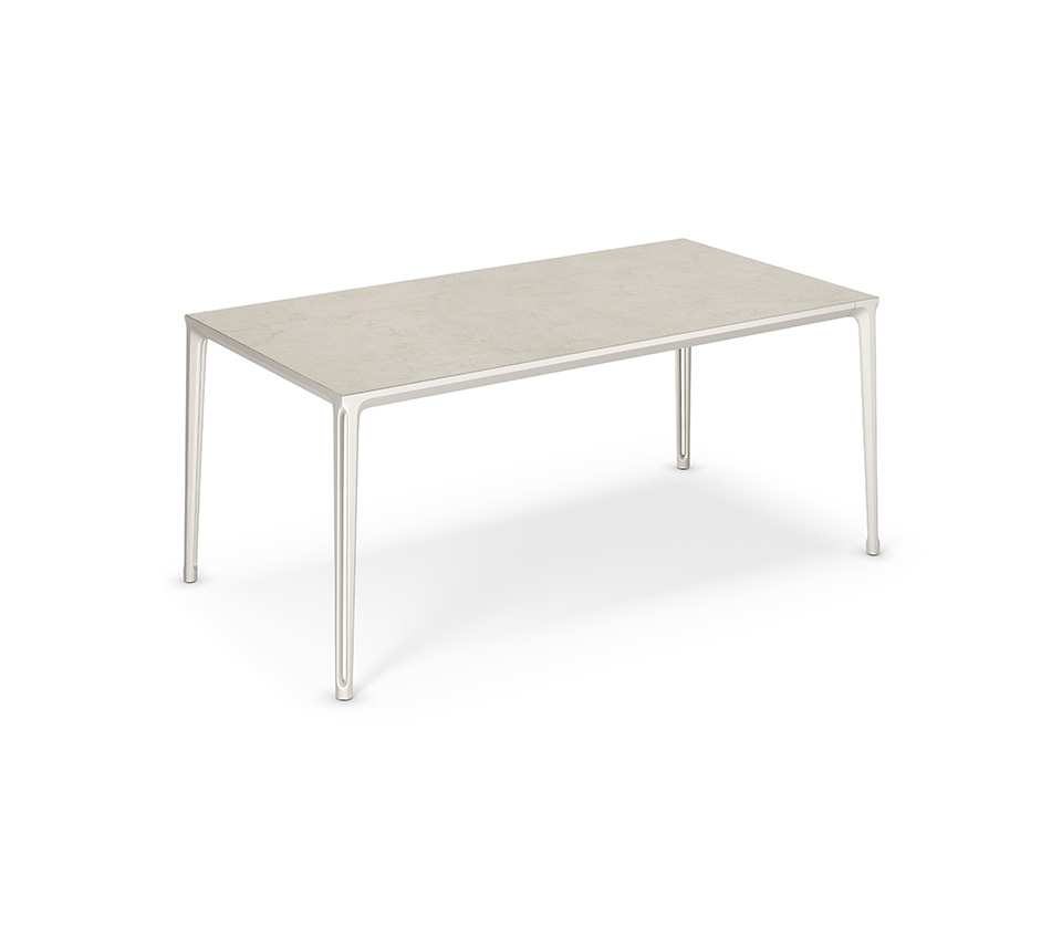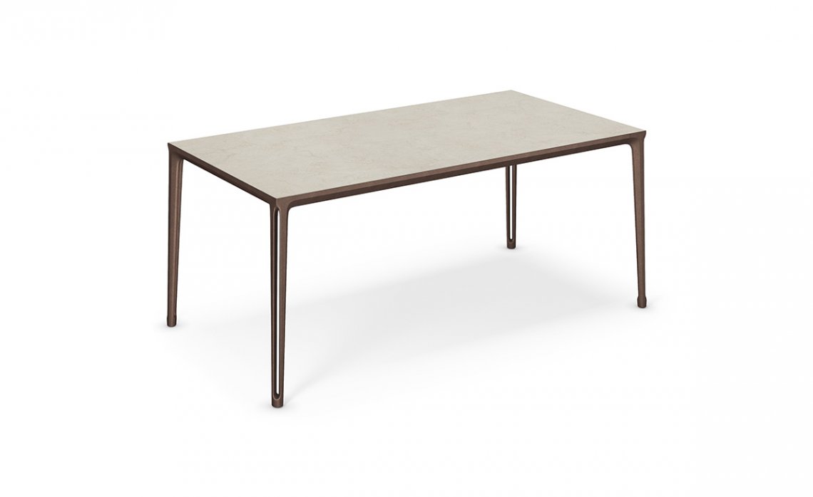 Boulevard is a design dining table with a disarming simplicity. It fits into a residential setting with ease and contemporary charm. The legs have a vertical cavity, enhanced by sophisticated varnished finishes chosen from among different intense or bright shades. The same finish rigorously frames the top, available in glass or ceramic.