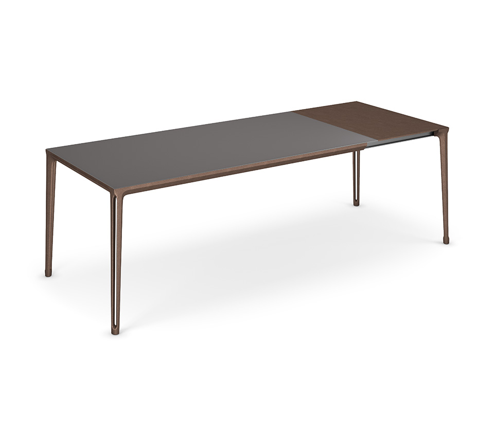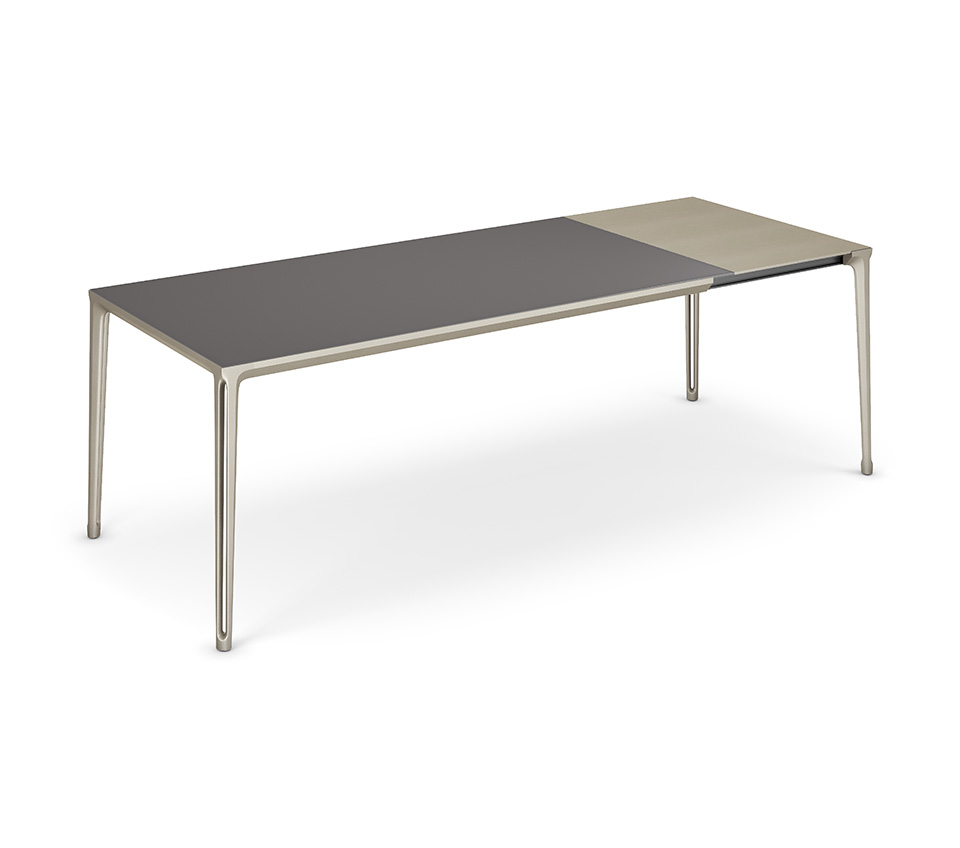 Boulevard is a design dining table with a disarming simplicity. It fits into a residential setting with ease and contemporary charm. But upon looking more closely, you immediately notice the richness of the details and the meticulous workmanship. The legs have a vertical cavity, enhanced by sophisticated varnished finishes chosen from among different intense or bright shades. The same finish rigorously frames the top, available in glass or ceramic.