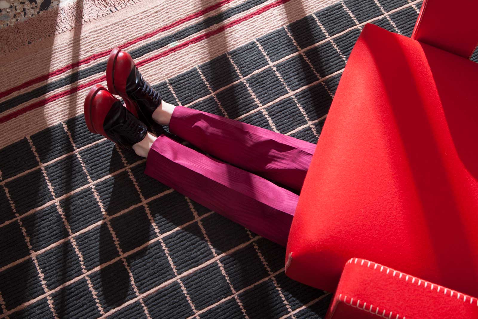 For the collection Quadro Celeste, Studiopepe takes their inspiration from archetypal graphic elements such as the numerical grid of the Quadrato Magico or Magic Square. The Magic square is a grid where the total of every row and column including the diagonal lines always adds-up to the same number. This number is called the magic constant or the magic sum of the square. In the collection it is this number which gives the name to every rug. The project is completed with a collection of wallhangings which interpret the rug as a sculptural object with a strong symbolic meaning. The use of the color becomes the contemporary break of a geometry dominated by shades of wool and natural shades.