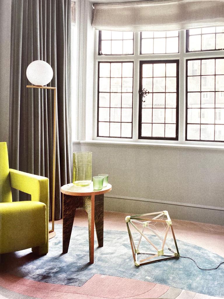 From a photo of a Venetian flight of stairs came the idea to reinterpret the iconic image of steps covered in water by the lagoon through the colors and materials of a rug, Giudecca which is part of the Acqua Alta Collection for Rubelli was created. The different tones of grey of the wool create the stone steps, marked by salt and the effects of time. The sea and the vibrations of the waves are transformed into a shimmering silk surface where tones of blue and green radiate together. Venice and its magical atmosphere are represented into a new contemporary vision through a rug completely knotted by hand in Nepal.