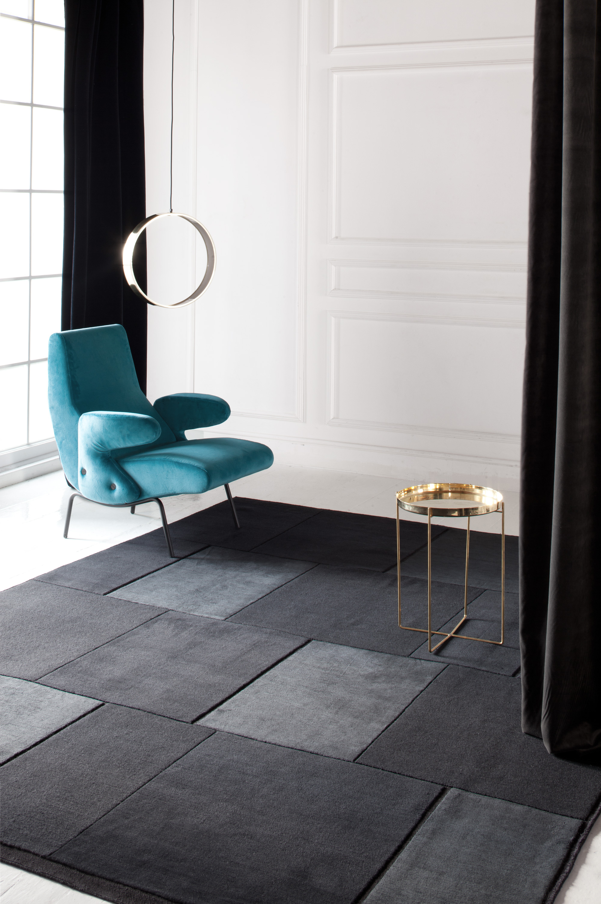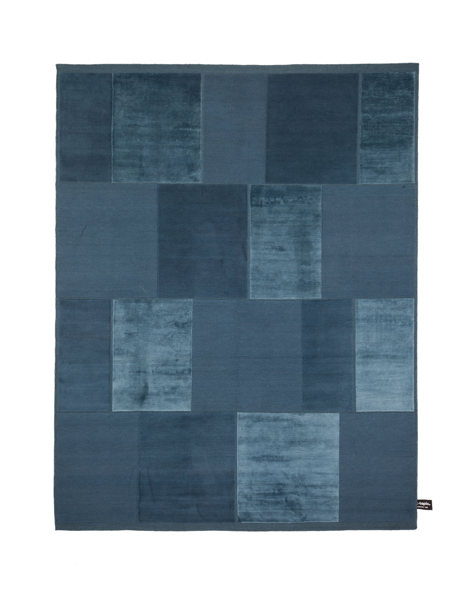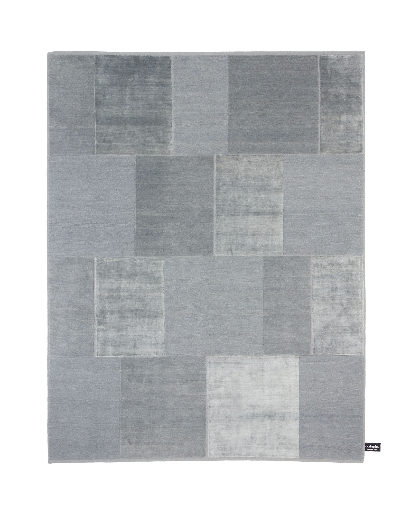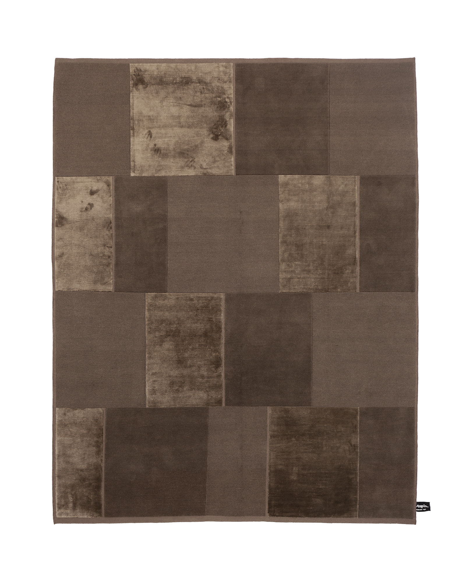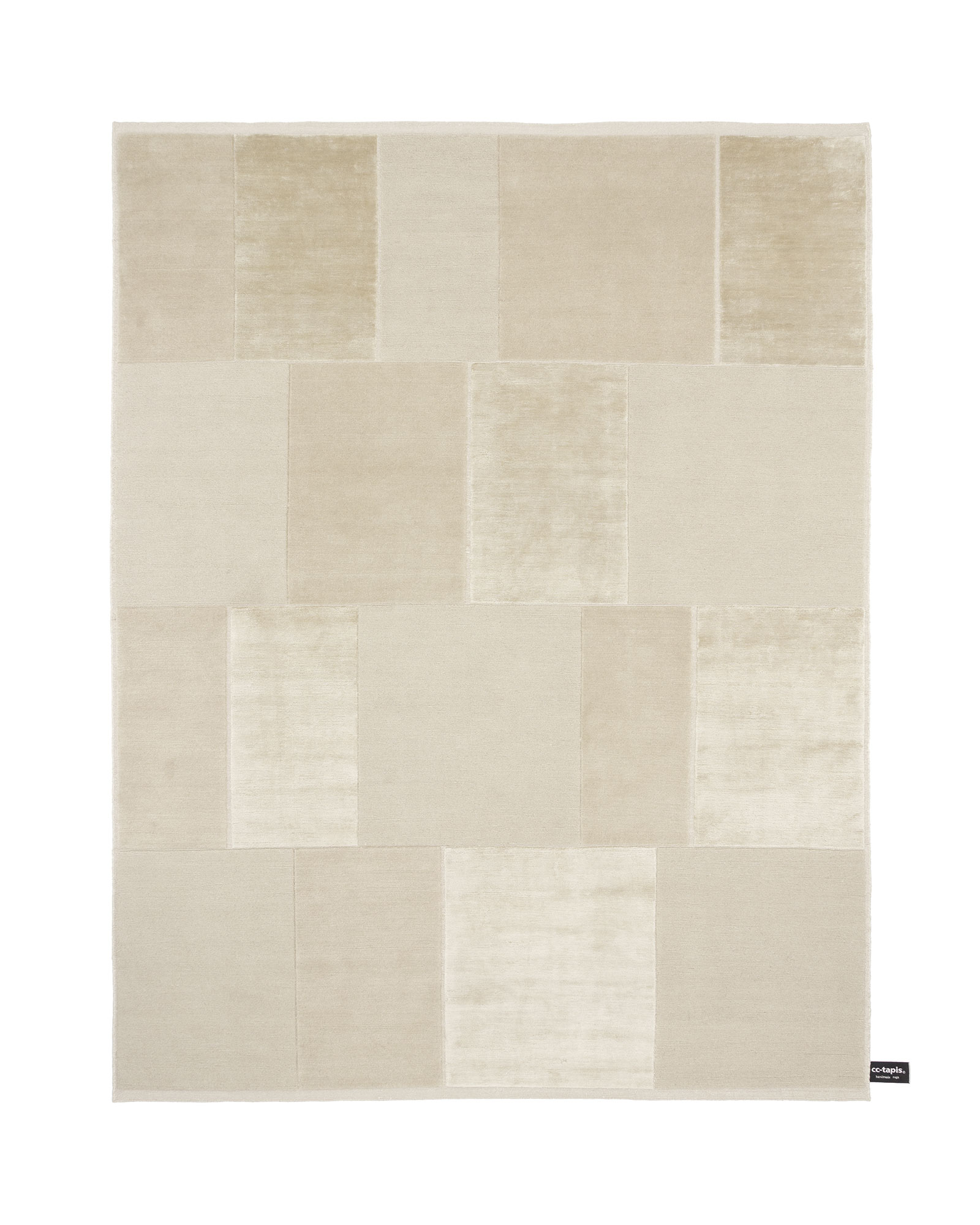 Architectural in design, simple and delicate tonal variations are created by a combination of materials and knotting techniques. Far from patchwork, nothing on this rug is haphazard, the architect designers stay true to their trade and have created a rug where every knot has its place. Panels of pure silk are counter-balanced by panels of thick Himalayan wool made from 2 different knotting techniques and the spaces between the panels show the nude dyed cotton warp.