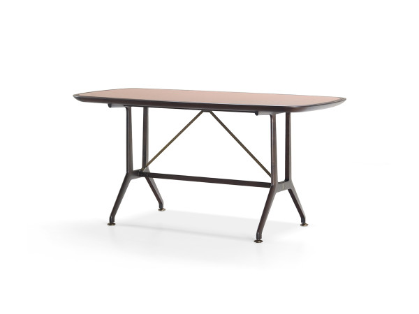 La struttura è caratterizzata da due cavalletti in legno massello attraversati da due tiranti tenditori in ottone posti in diagonale che ricordano le forme del “Sopwith Camel”, uno dei più importanti aerei da caccia biplano del Regno Unito attivi durante la Prima guerra mondiale. Il piano è in legno, vetro retro verniciato o pelle.