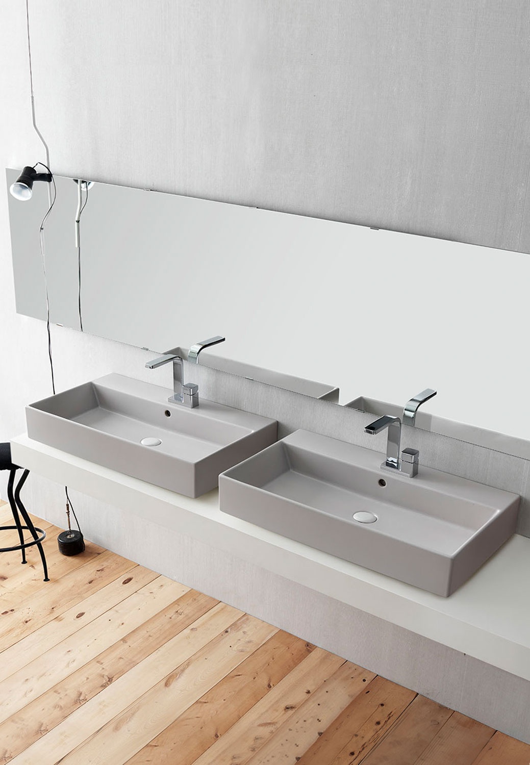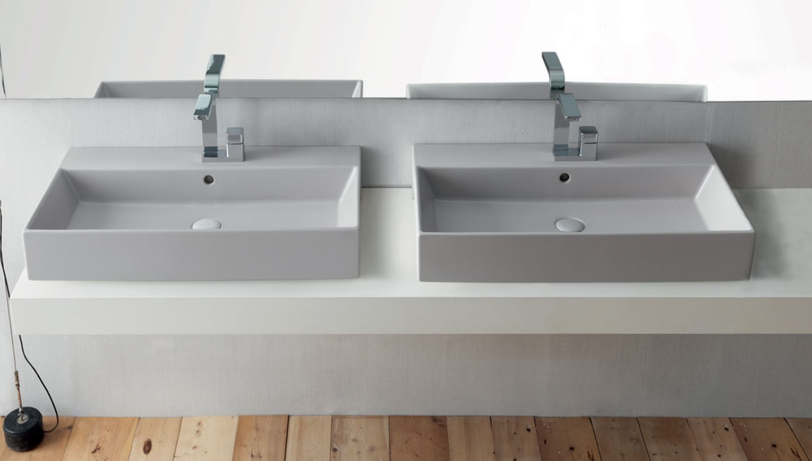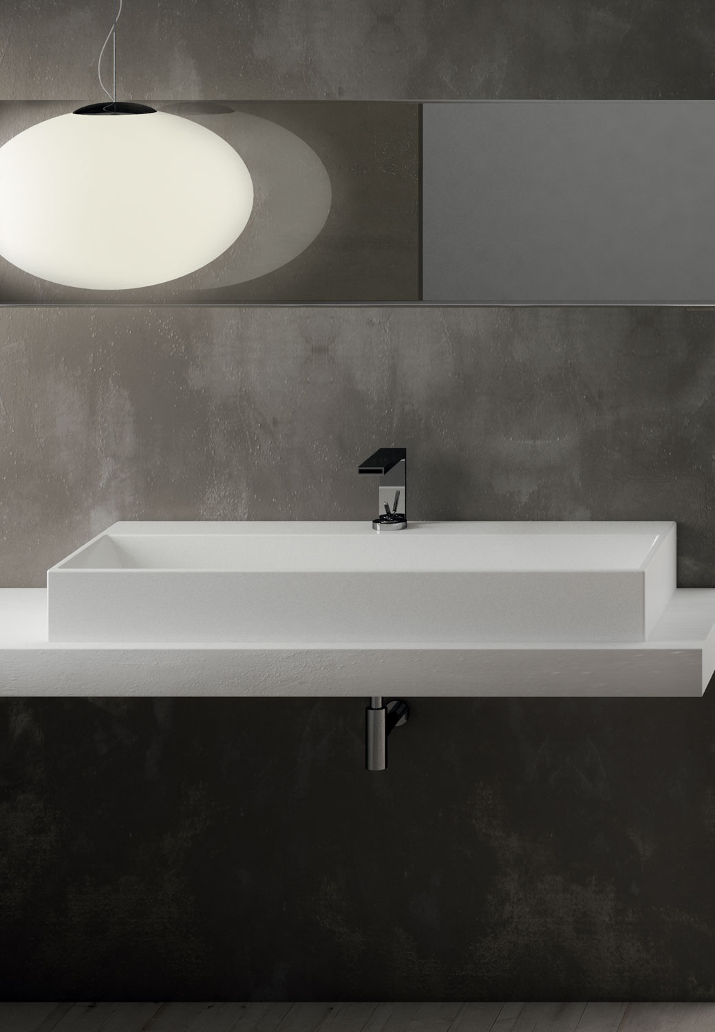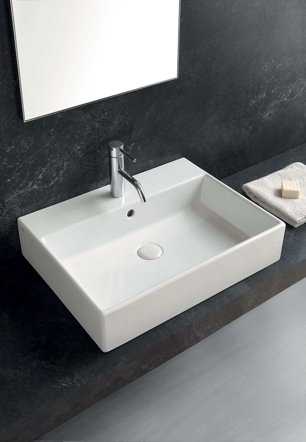 帶溢水口的洗臉盆,適用于懸掛和表面安裝,有各種陶瓷飾面可供選擇。