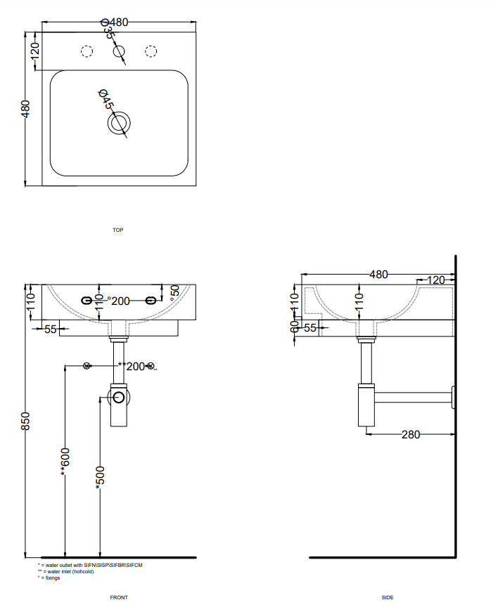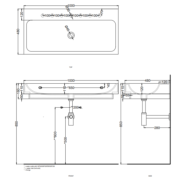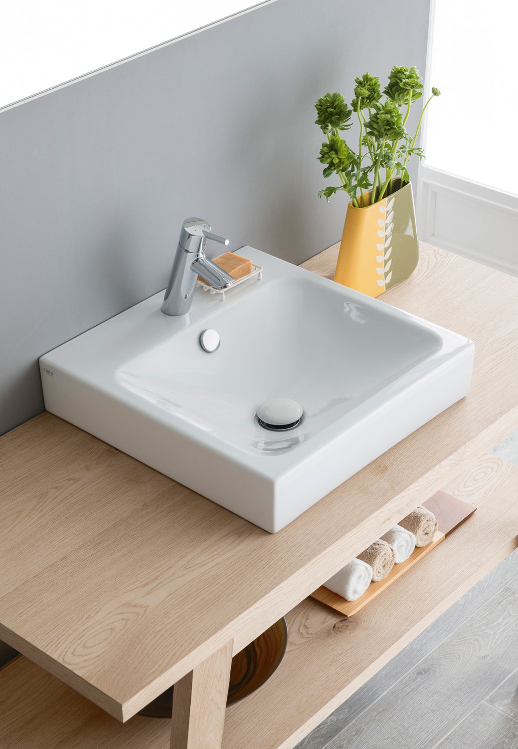 帶溢水口的洗臉盆,適用于懸掛式、臺面式和半嵌入式安裝,提供各種陶瓷飾面。